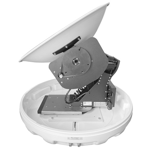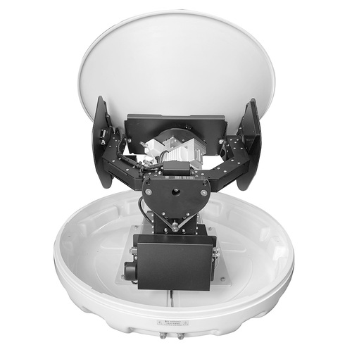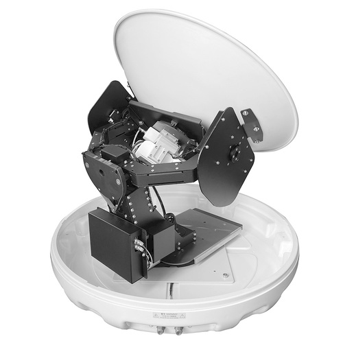 64 cm Ku‑band dish with 3‑axis stabilization and 4‑axis automatic skew tracking